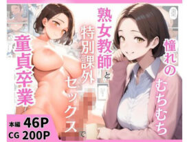 〜17ページ体験版配信中〜俺はいつものように図書館で引きこもっていた。「大山君。今は何読んでるの?」「河野先生・・・」現国の河野先生だ。いつも図書館にいる俺を気にかけてくれる。40歳には見えない容姿で俺も密かに憧れていた。「ねえ、大山君。小説書いてみない?」「え?」「たくさんの本を読んでる大山君なら、きっと素敵な小説が書けると思う。その時は最初の読者になりたいな」突然の提案に俺は驚いたが、不思議とやる気になった。もしかすると俺は自分を表現したかったのかもしれない。〜数週間後〜「河野先生・・・小説書いてみたんですけど」「えー!!ほんとに書いてきてくれたの!?ありがとう!早速家で読ませてもらうね」先生はとても喜んでくれた。ただやはりとてつもなく恥ずかしかった。〜翌日〜「大山く〜ん」「先生・・・なんですか?」「読ませてもらったよ。君は人の心の中が透けているみたい。あっという間に読んじゃった。」「続きができたら、また読みたいなぁ」先生のこの言葉は創作意欲を大いに掻き立ててくれた。それから河野先生と頻繁に会うようになり俺の小説に色々なアドバイスをくれるようになった。時に先生の恋愛の話を聞いたりと、親密になった気がしていた。クラスメイトと何気ない会話の中から河野先生が話題に上るとうわさ話を教えてくれた。「河野先生、体育教師の丸岡と付き合ってるらしいぜ」「え・・・?」俺は頭が真っ白になった。別に俺と付き合っているわけでもない、大人同士の交際なんて当たり前だ。頭ではわかっているのに、心を抉られるようだった。失意の中、帰宅しようと廊下を歩いている時だった。(・・・丸岡さんやめてっ!学校では嫌だって・・・)空き教室から声が聞こえてきた。「丸岡・・・?もしかして・・・」音を立てないように、そっと教室を覗くとそこには河野先生と丸岡が抱き合っている姿があった・・・。■ジャンル・熟女、教師、巨乳■収録内容・前戯、正常位、バック、フェラ、パイずり、■ 仕様セリフあり:46枚(PDF同梱)おまけCG:200枚ファイル形式:jpg(本編)、png(おまけCG)※おまけCGはコマ割り前の画像とコミック未使用画像になります。■ その他使用ツール: 本作品は NovelAI を使用して制作されています。